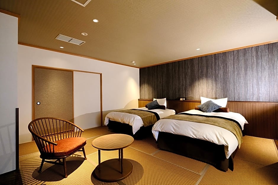 This spacious suite includes 1 living room, 1 separate bedroom and 1 bathroom with a bath and free toiletries. This suite is air-conditioned and has a seating area with a flat-screen TV, a safe deposit box, an electric kettle, yukata, as well as heating. The unit has 4 beds and 5 futons.